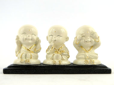 Trio de Budas na Base – Nada Vejo, Nada Falo, Nada Ouço - Marfim
