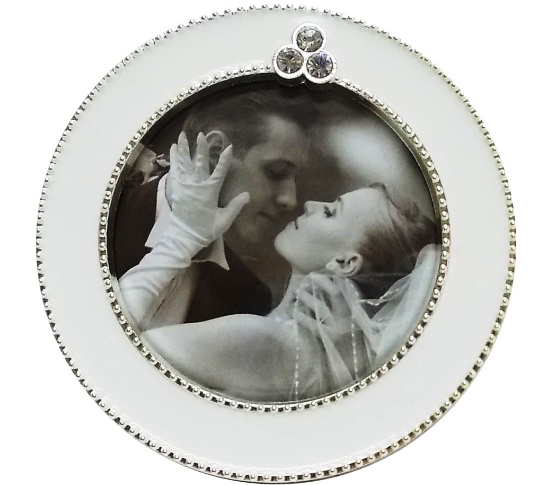 Porta retrato Zamac Redondo Branco 5x5cm
